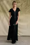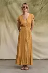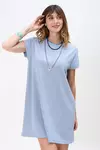 Vestido corto confeccionado en lino. Modelo suelto de corte evaseé, con botones en el delantero. Posee bolsillos en los laterales y elástico en el contorno de espalda. La modelo usa talle Small. Medidas talle S: Largo total: 84 cm / contorno de busto (estirado): 88 cm.